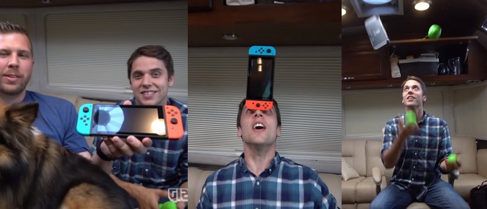 Après l'unboxing et le démontage, la Nintendo Switch se retrouve mise à l'épreuve par deux amateurs d'expériences farfelues sur la chaîne Youtube Gizmoslip (ça ne s'invente pas, un nom pareil). Et voilà notre belle Switch transformée en balle pour jongler ou encore en frisbie. La pauvre console subit tous les outrages... Mais pas de panique, cette Switch là ne finira pas dans un micro-ondes ou dans un mixer.. Tout ceci n'a qu'un but, nous prouver la solidité de la bête belle (et accessoirement, nous faire délirer). A ne pas manquer : ce grand moment de grand n'importe quoi lorsqu'un des deux trublions essaie de rentrer la console dans sa station d'accueil en la balançant, à l'aveugle, derrière son épaule... Evidemment, les enfants, ne faîtes pas ça chez vous.