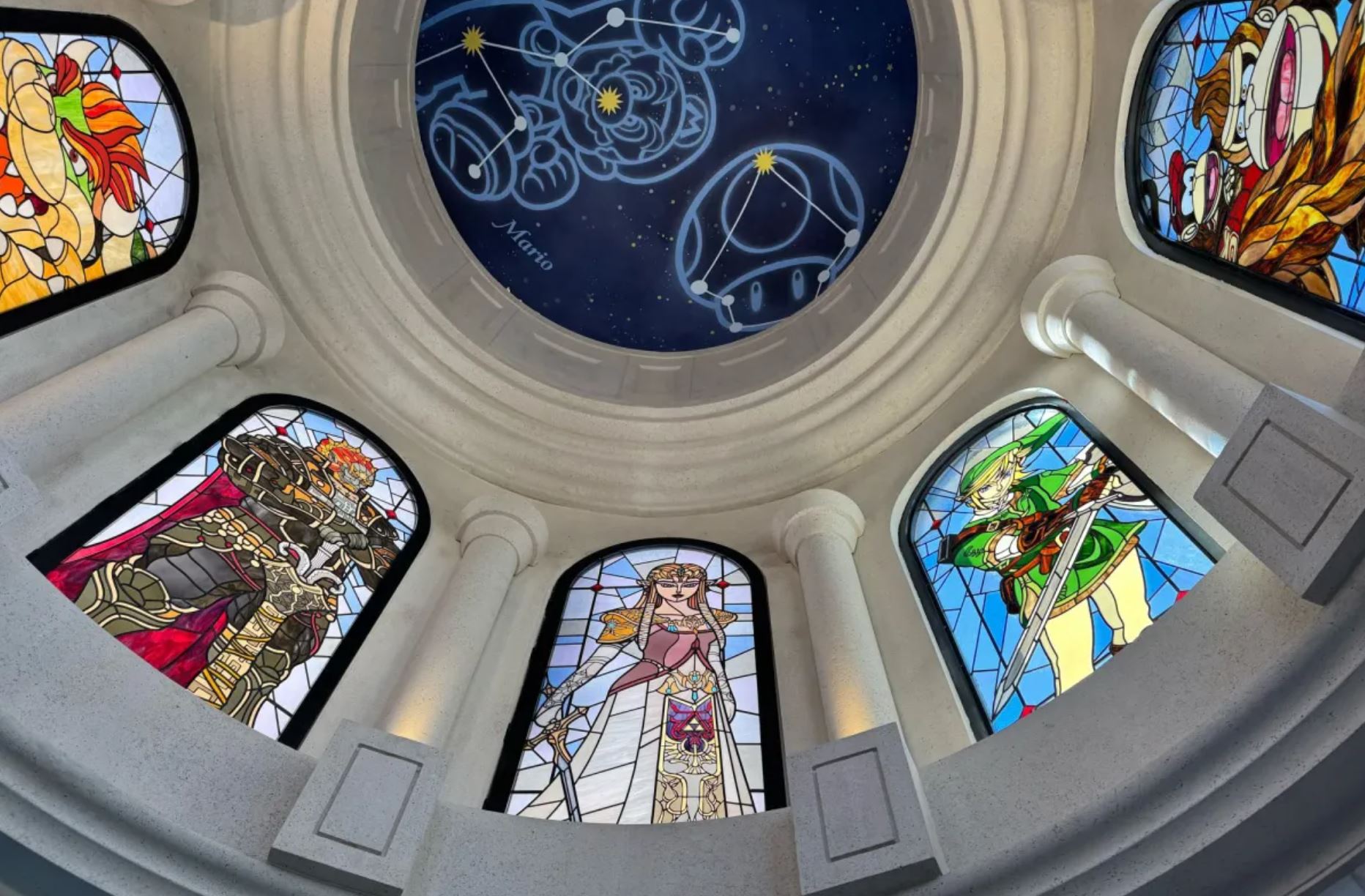 Ainsi, nous découvrons aujourd'hui que Ganondorf, Link et Zelda apparaissent aux côtés de Mario et Donkey sur de magnifiques vitraux à l'entrée du Nintendo Store du Celestial Park. Faut-il y voir un signe avant-coureur ? Mystère, mystère...