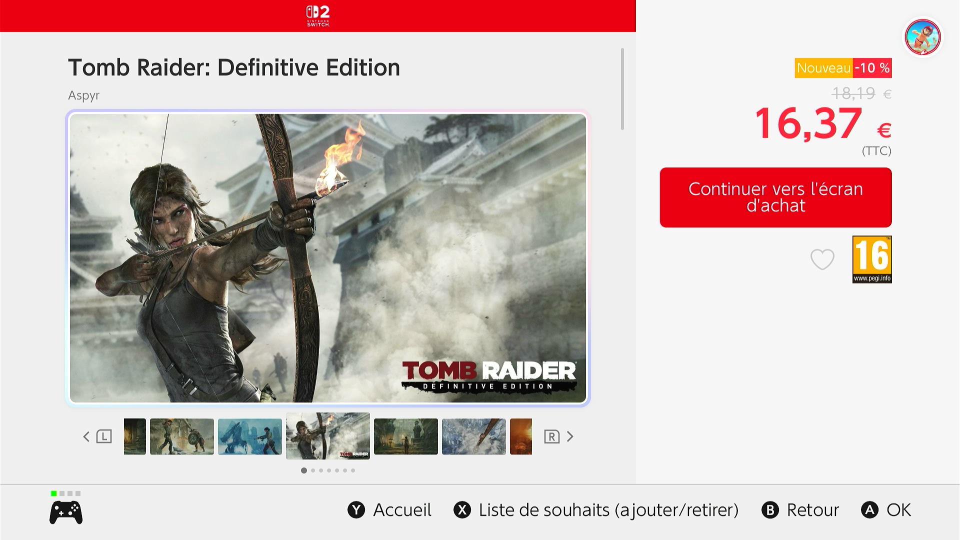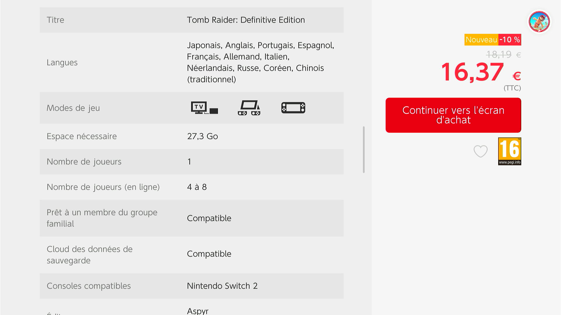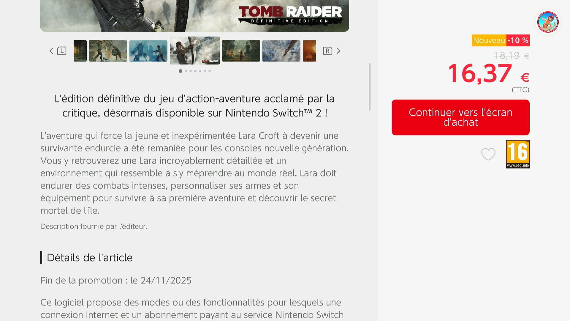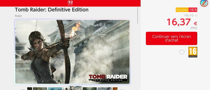Remise fidélité : En guise de remerciement, les propriétaires de Tomb Raider I-III Remastered sur Nintendo Switch bénéficient d'une remise supplémentaire de 10 %.