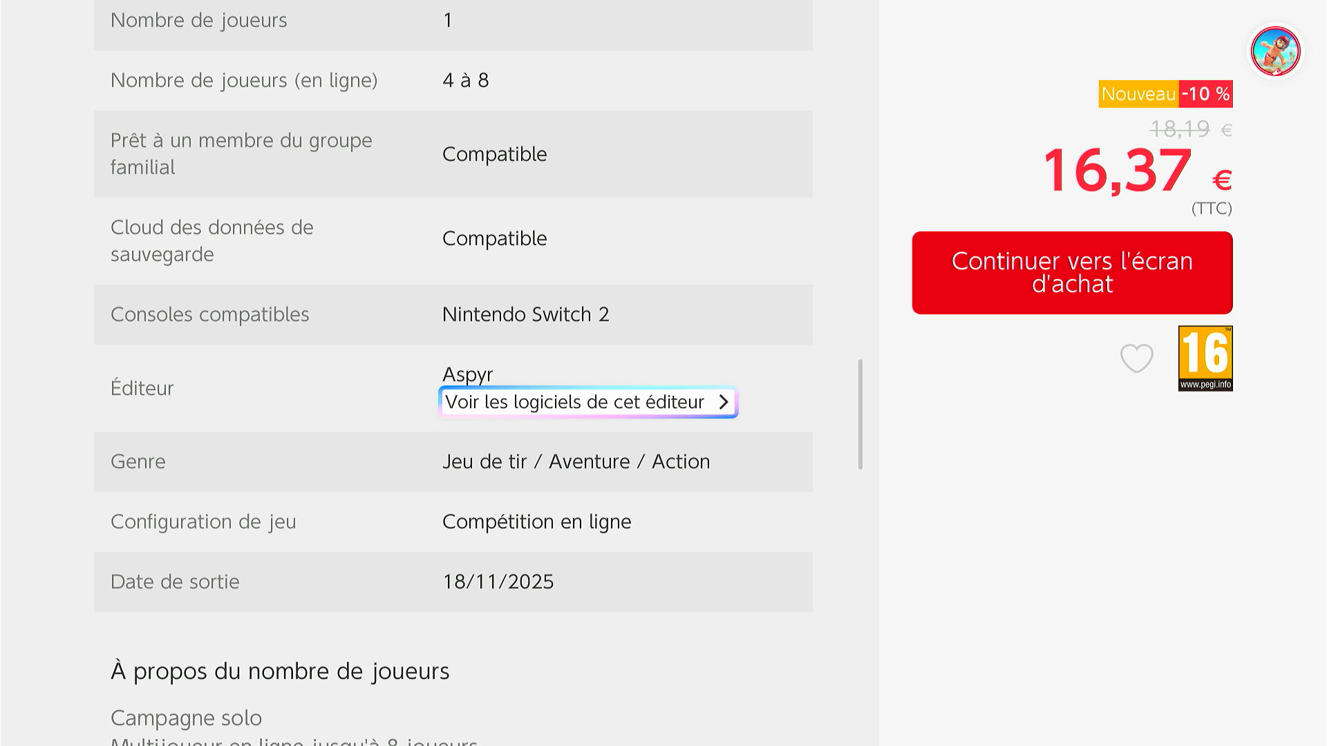 Remise de lancement : Pour démarrer, le jeu est disponible avec une remise de 10 % sur son prix habituel de 18,19€ pour tout le monde jusqu'au 24 novembre !