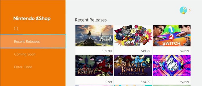Un coup d' oeil sur l'eShop de la Nintendo Switch