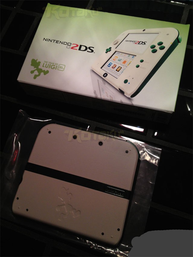 La 2DS, petite nouvelle dans la famille des 3DS, pourrait bien elle aussi s'octroyer une pléthore de dérivés à l'instar de ses consoeurs. En effet, Kotaku a mis la main sur quelques photos leakées qui exposent une 2DS aux couleurs verdâtres et marqué d'une silhouette Luigi à l'arrière.