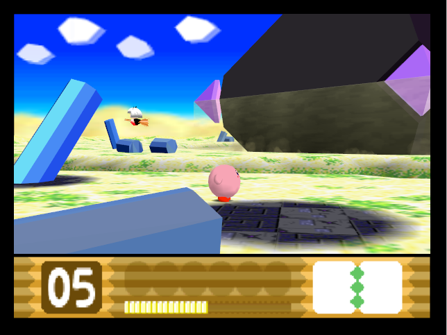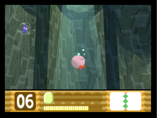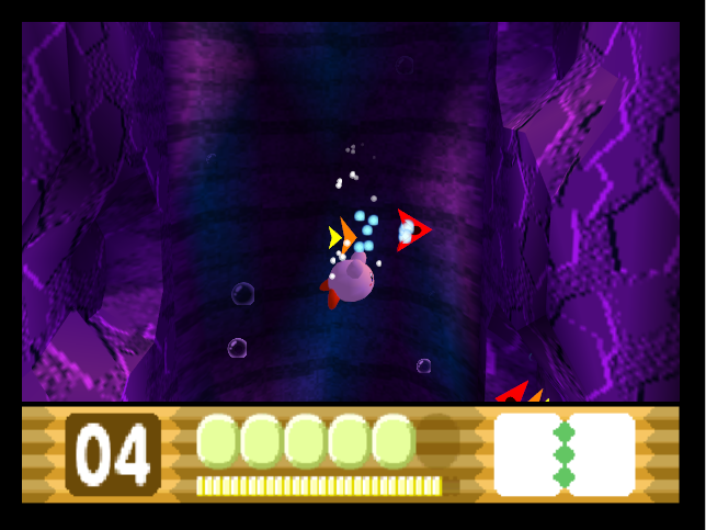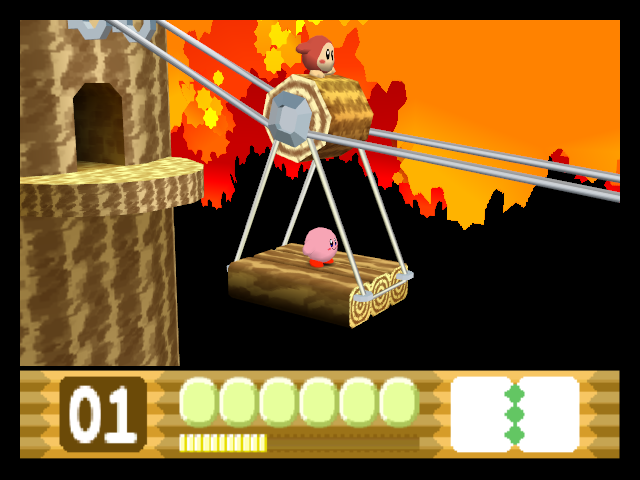 Attention on est pas dans Kirby's Dreamland ici! Impossible de faire tout le niveau en volant! Kirby, au bout d'un moment, s'épuise et on ne peut pas aller beaucoup plus loin...
